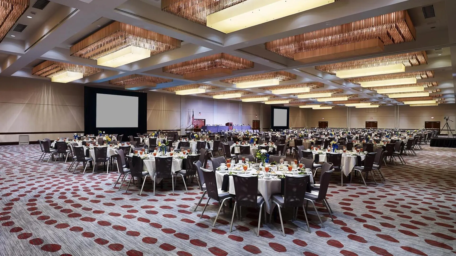 When it comes to meetings and events, The Hyatt Regency Cincinnati is a top choice. The property boasts the largest hotel ballroom in downtown Cincinnati, ensuring professional and seamless experiences for all guests. In terms of dining options, the property offers tempting farm-to-table cuisine at the Red Roost Tavern, as well as a convenient 24/7 grab-and-go market. Additionally, guests can enjoy a chic restaurant and bar, a 24-hour fitness center, and a heated indoor pool, making it ideal for both quick workouts and family fun. The property ensures that guests have delectable dining options beyond their accommodations. The tempting Red Roost Tavern delivers an upscale experience with its farm-to-table menu and chic ambiance. The restaurant features stylish industrial pendant lights, stone accent walls, and a spacious bar area. Guests can enjoy made-to-order options for breakfast and choose from a variety of snacks and grab-and-go options at The Market. For additional dining options, American and Latin American cuisines can be found at nearby restaurants such as Mita's Restaurant and Gold Star Chili, all within a short distance from the property.